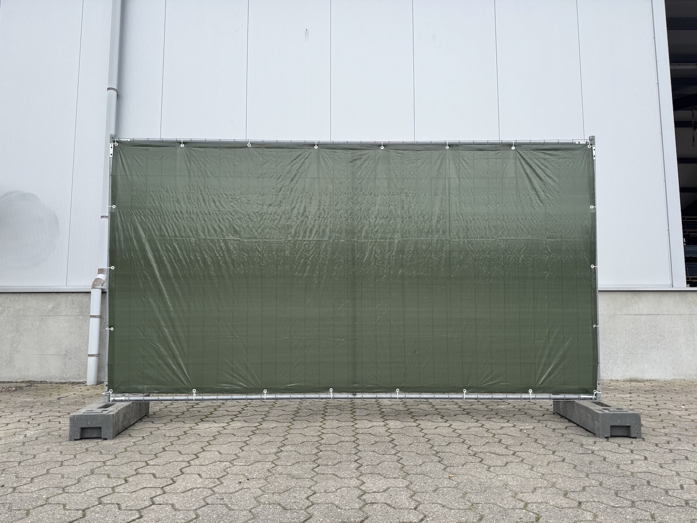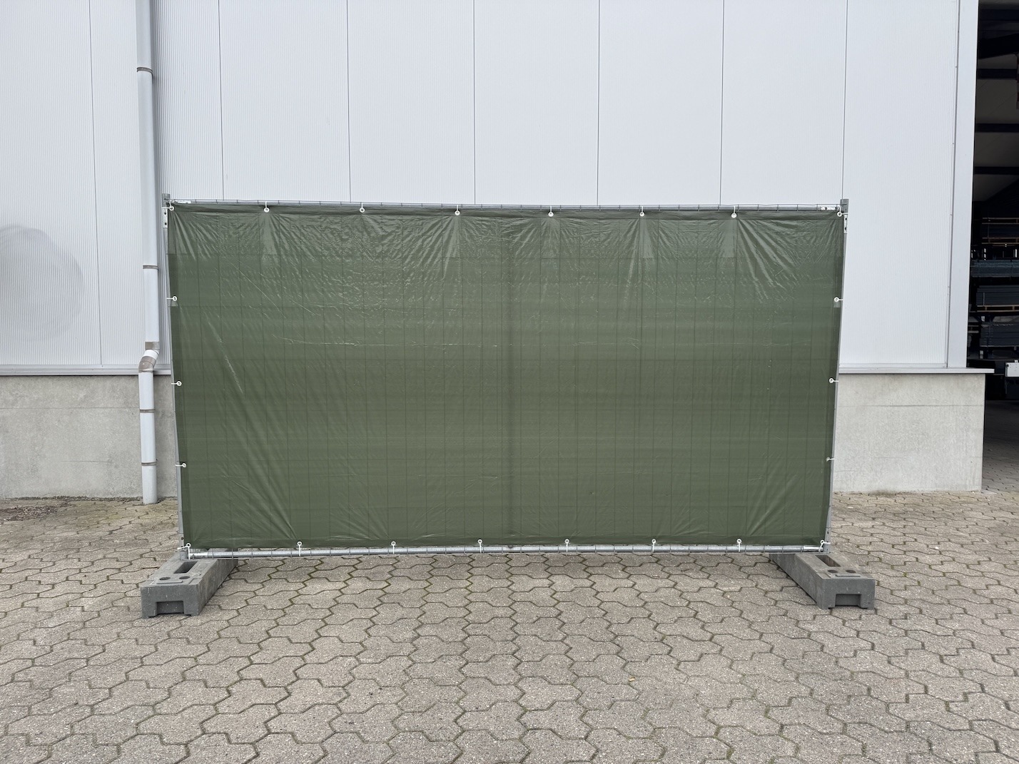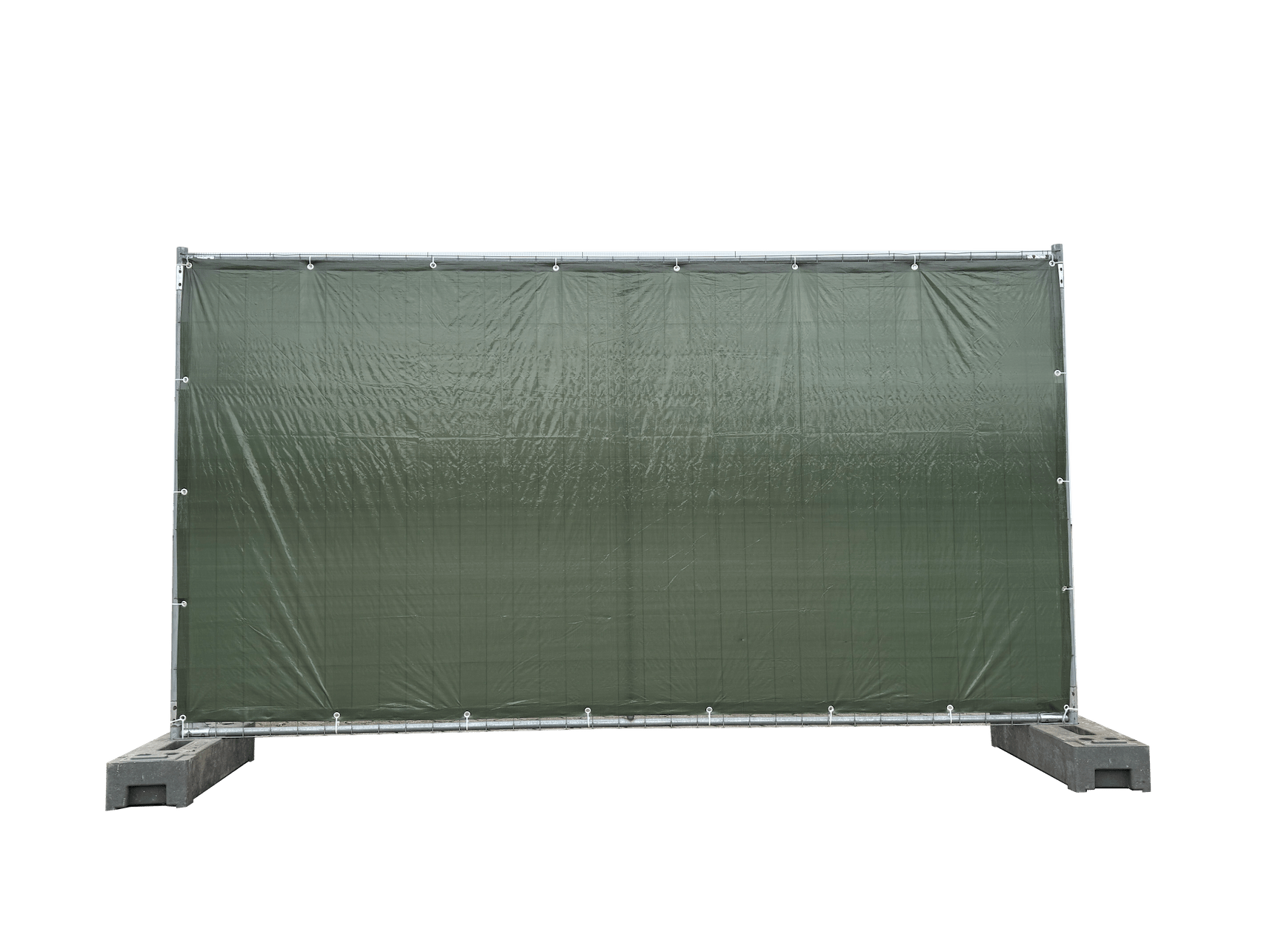 Doos a 20 stuks. Bouwhekkleed gemaakt van tarp of zeil in de afmeting 1,80 x 3,45 m en rondom voorzien van randversterking. Deze bouwhekkleden zijn sterk en stevig. De versterkte hoeken zijn voorzien van aluminium zeilringen voor de bevestiging aan de mobiele bouwhekken. Weerbestendig en niet transparant.