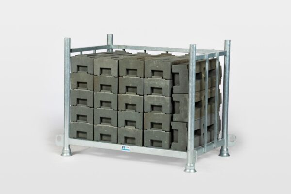 De bouwhekvoeten pallet is een handig stalen rek voor de opslag en transport van circa 25-30 bouwhekvoeten. Stevige constructie, dus erg duurzaam. Stapelbaar. Afmeting circa 1310x810x1120 mm.